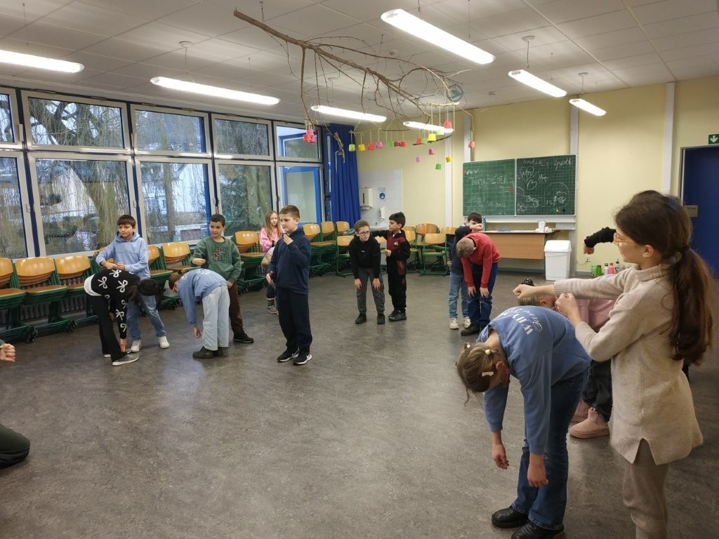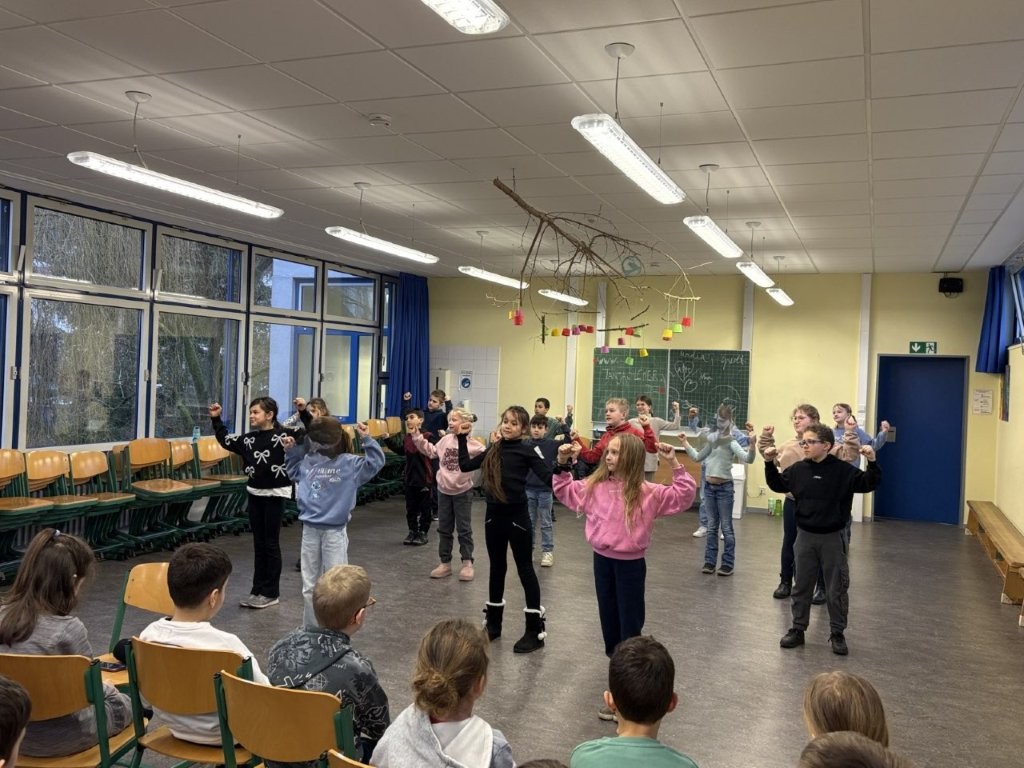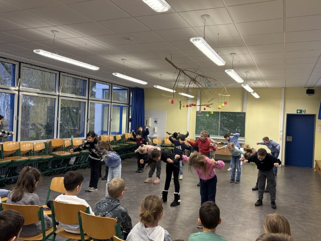 Hierbei ging es ums Ausprobieren, Neugierde und Kreativität in einem geschützten Rahmen in der eigenen Grundschule entdecken und kennenlernen. Die Kinder erforschten Tanzstile und Bewegungsqualitäten verschiedener Kulturen, erlebten die Freude am gemeinsamen Tanzen und lernten, wie man sich über Bewegung ausdrückt. Dabei stärkten sie neben ihrem Rhythmusgefühl und ihrer Raumwahrnehmung auch Teamgeist, Kommunikationsfähigkeit und Selbstbewusstsein. In einer gemeinsamen Abschlusspräsentation durften die Kinder am Donnerstag, den 29.01.2026, ihr Projekt vor den anderen Klassen aufführen.